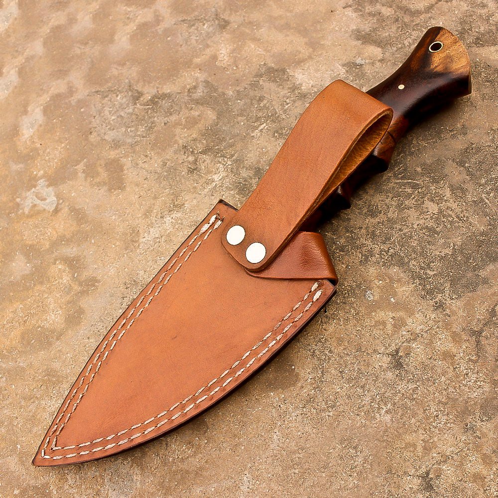 Included with this knife is a hand-stitched leather sheath for safe storage and easy belt carry, making it ready for any expedition, hunt, or outdoor adventure.