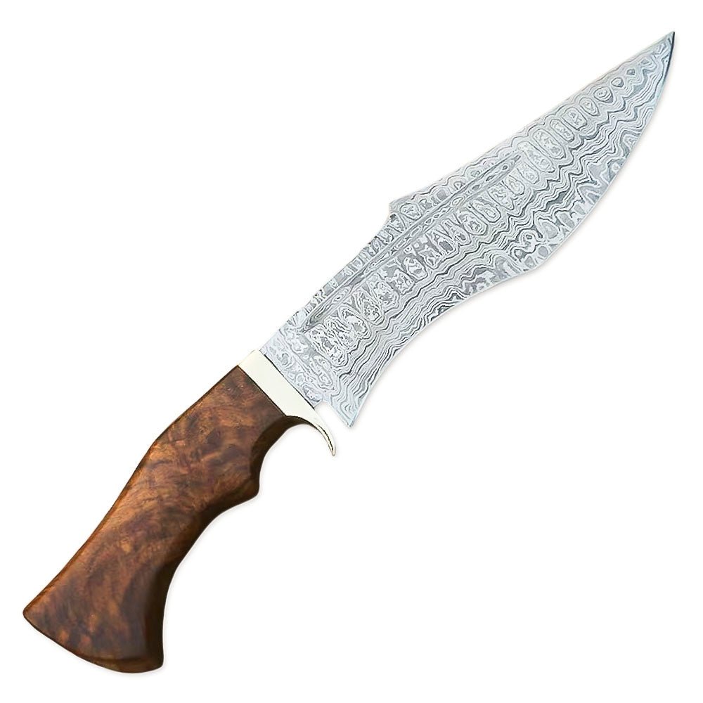 14″Handmade Damascus Steel Bowie Hunting Knife Rose Wood Handle With Leather Sheath