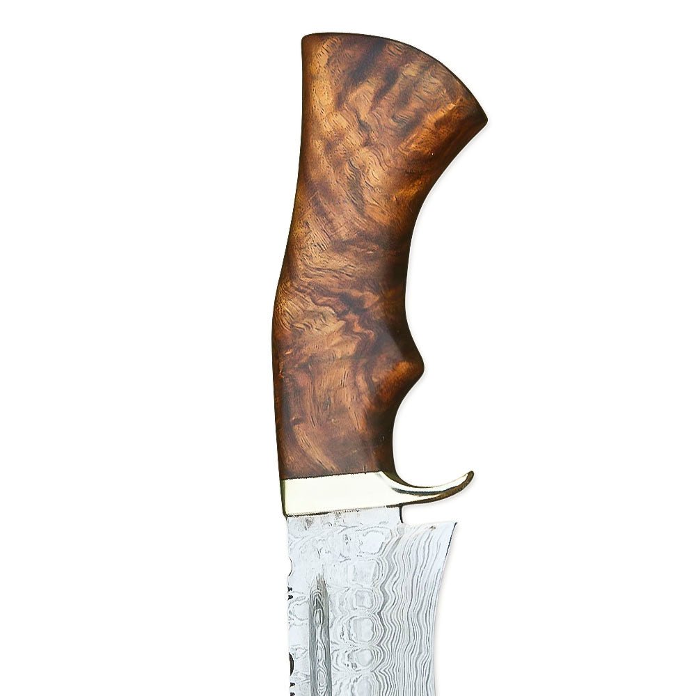The ergonomically designed handle is made from rich, natural rosewood, offering a smooth, secure grip that feels just right in your hand. Brass accents enhance the handle’s aesthetics, adding a refined touch to its rugged appeal.