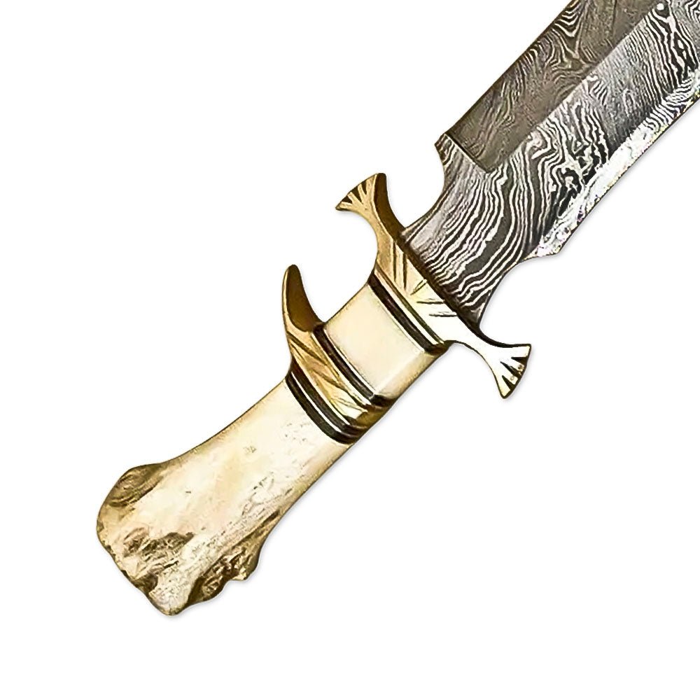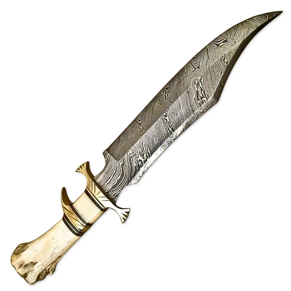Crafted for the wild, built for performance—this 16-inch handmade Bowie knife is a true testament to traditional blade craftsmanship. Forged from premium Damascus steel, the blade showcases a mesmerizing pattern of layered steel, offering both stunning aesthetics and superior functionality. Renowned for its incredible hardness, sharpness, and edge retention, this knife is ready to handle any hunting, survival, or outdoor task.