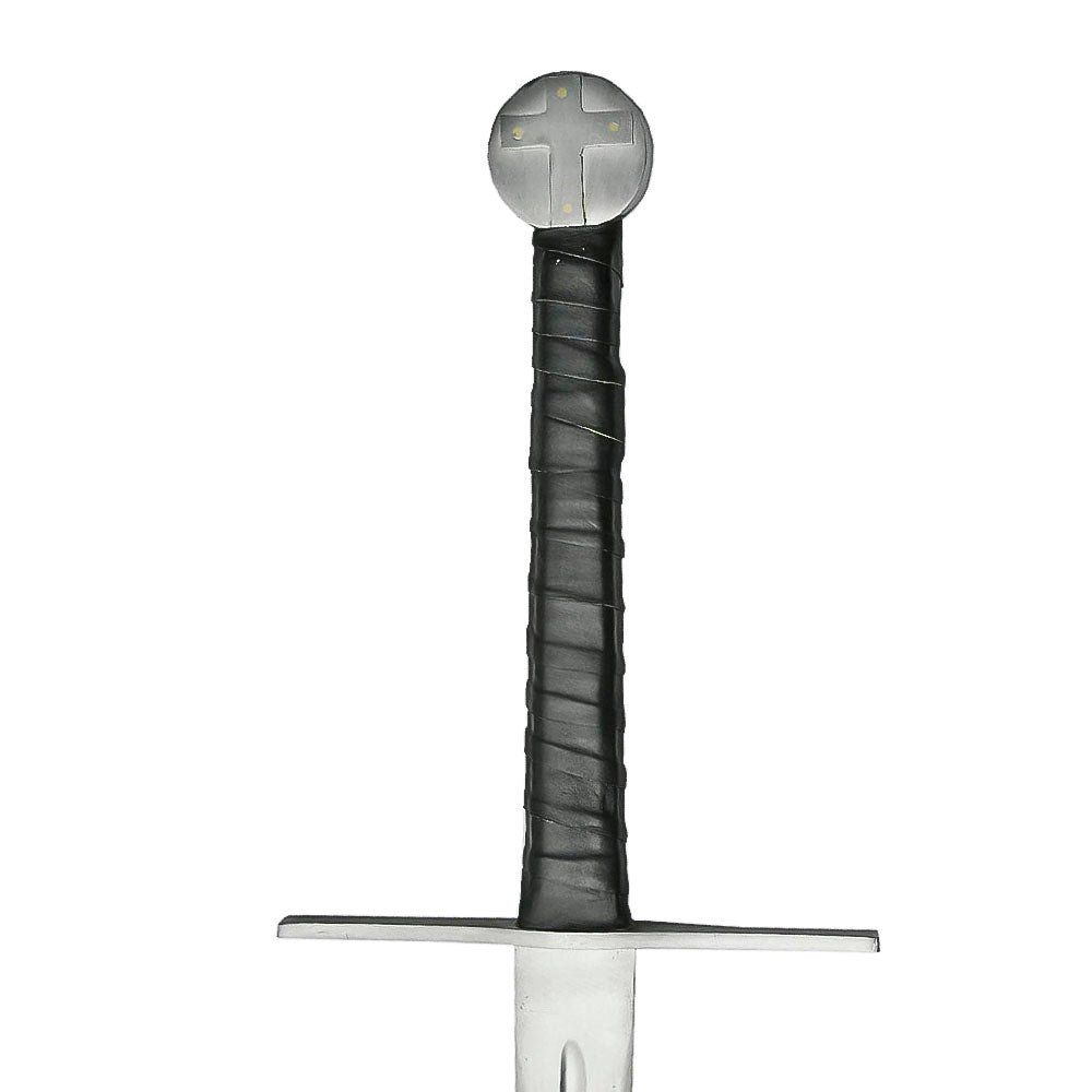 Handle: Textured black grip for secure handling, topped with a solid pommel for balance and authentic feel.