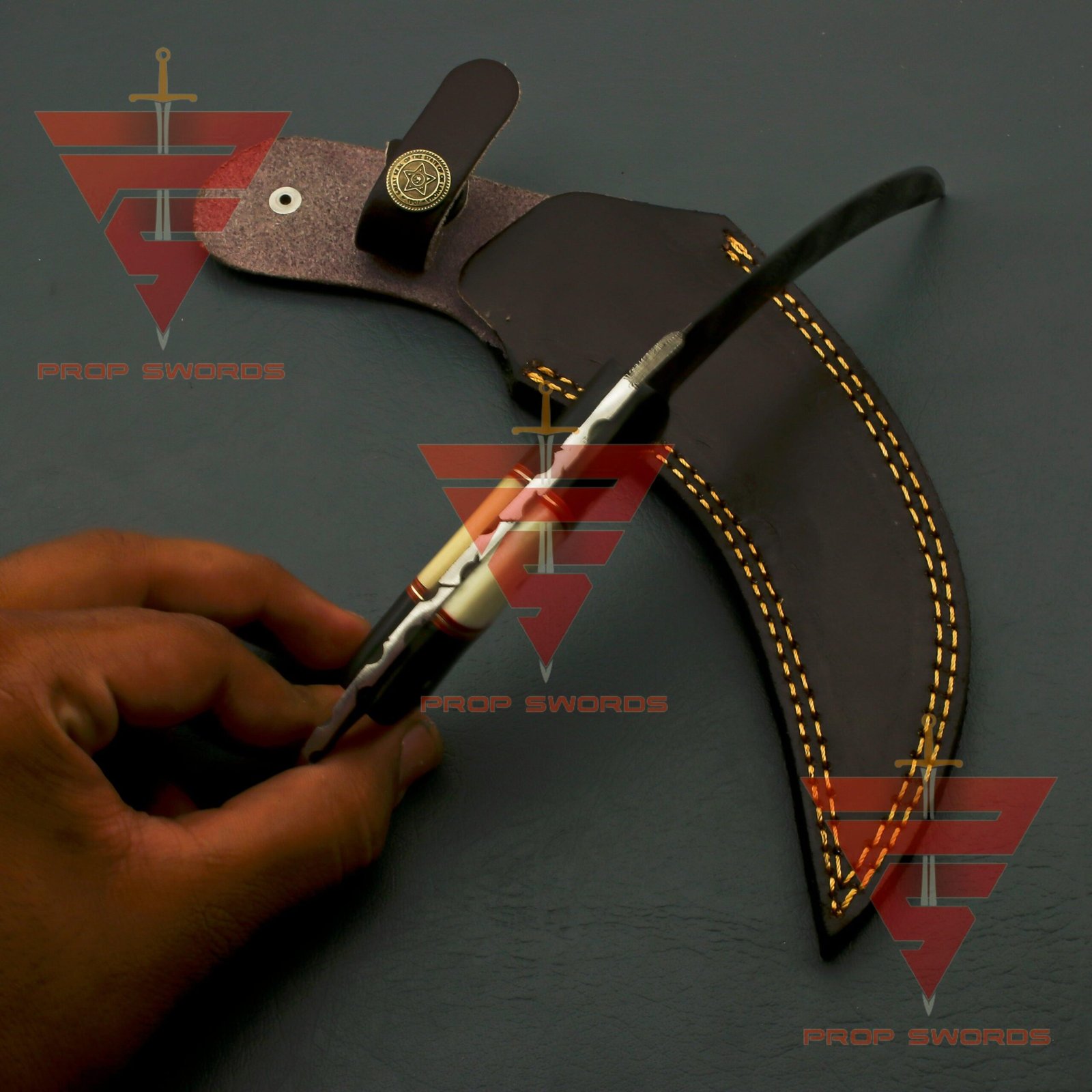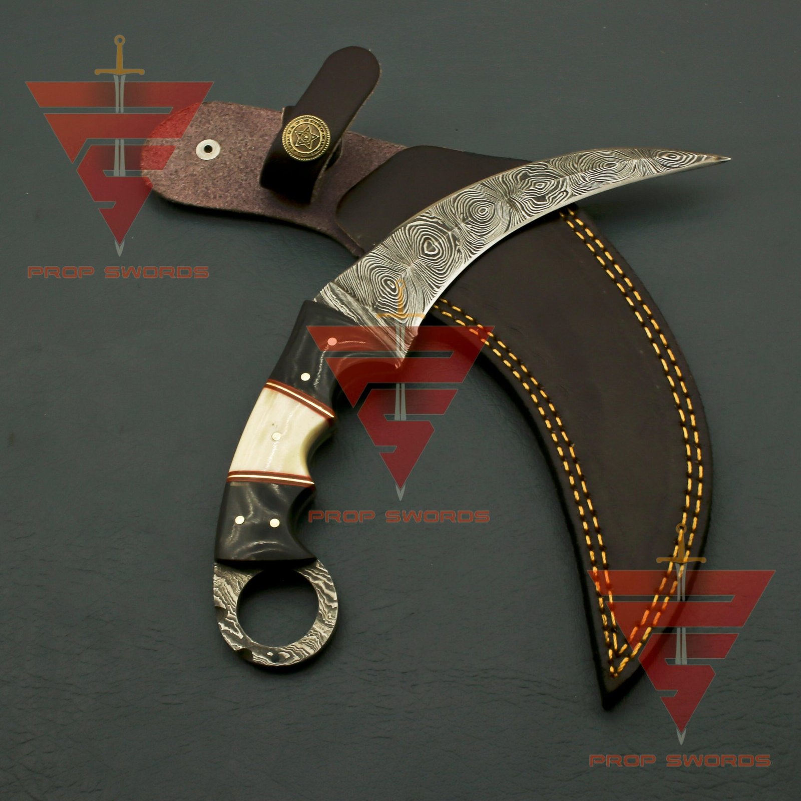 Handmade Damascus Steel Tactical Lethal Karambit with Leather Sheath:
