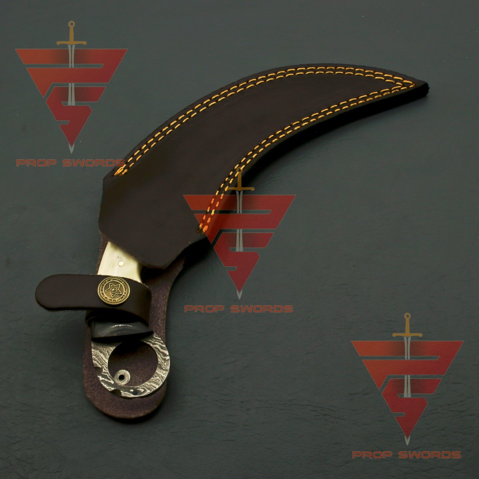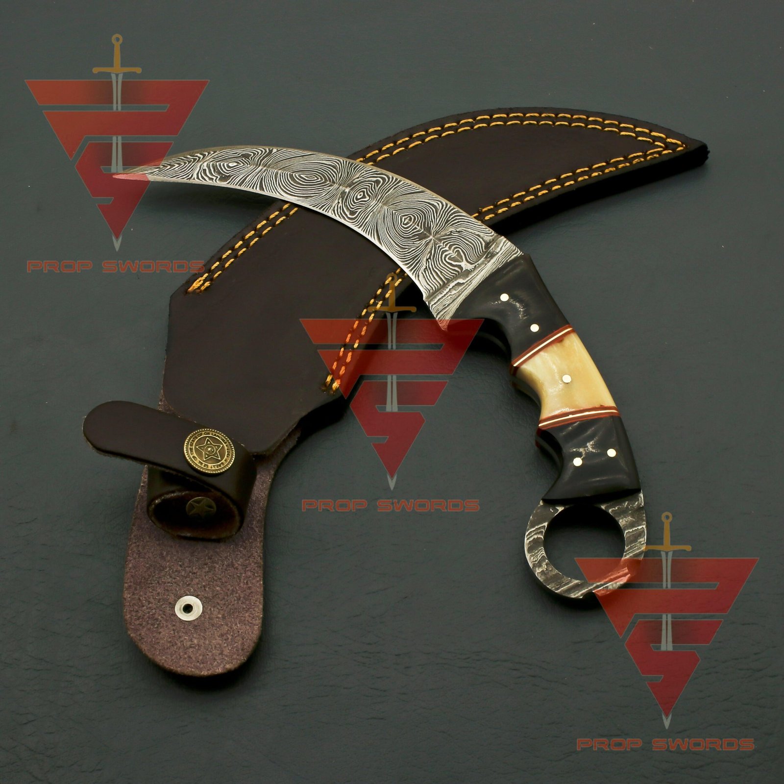 28. Damascus Steel Tactical Karambit knife with Leather Sheath