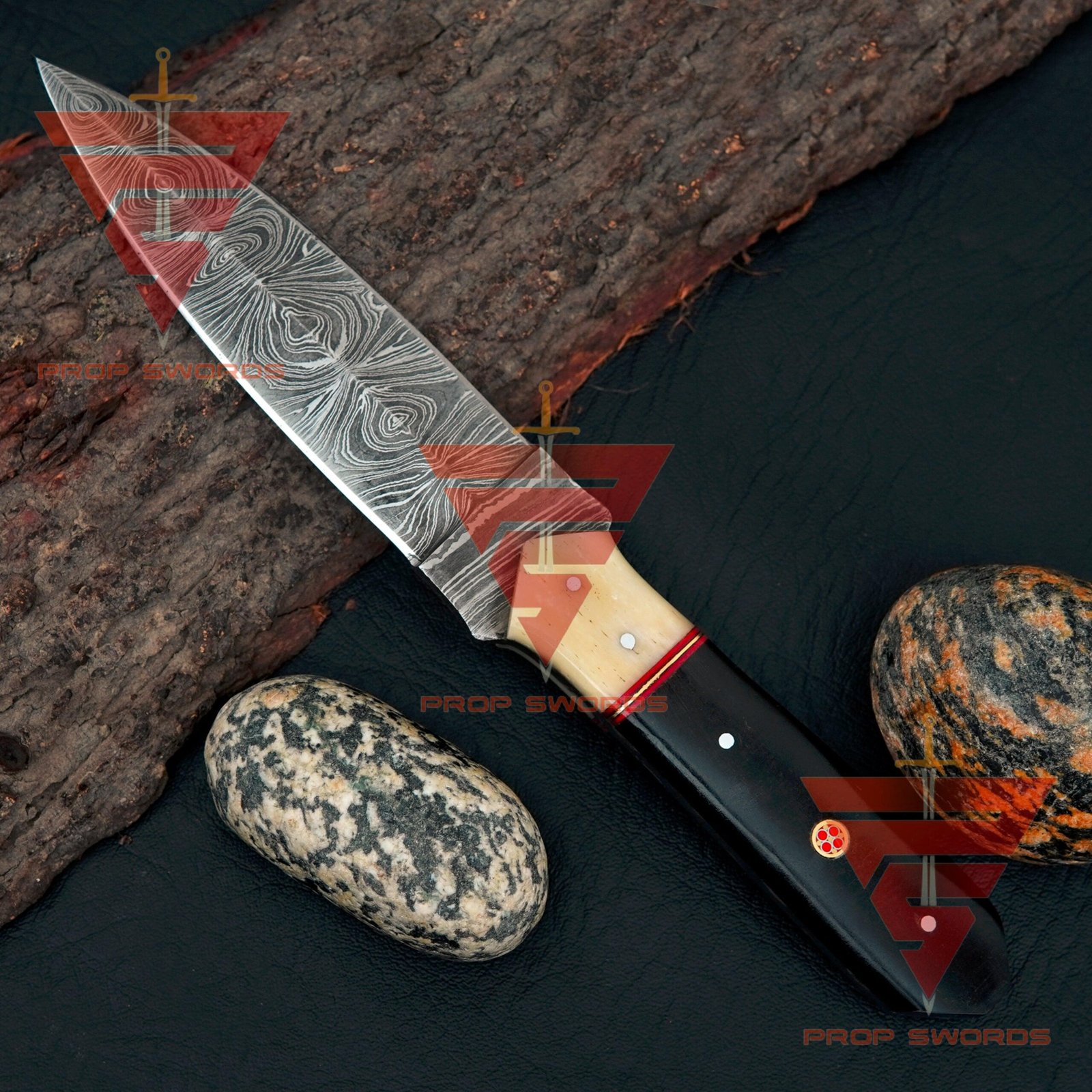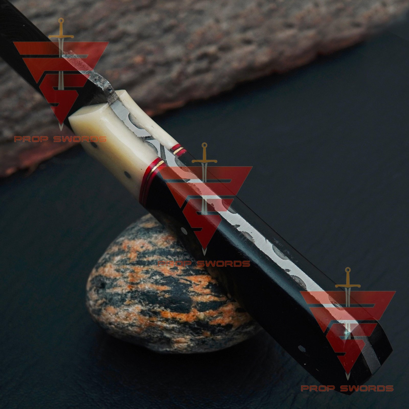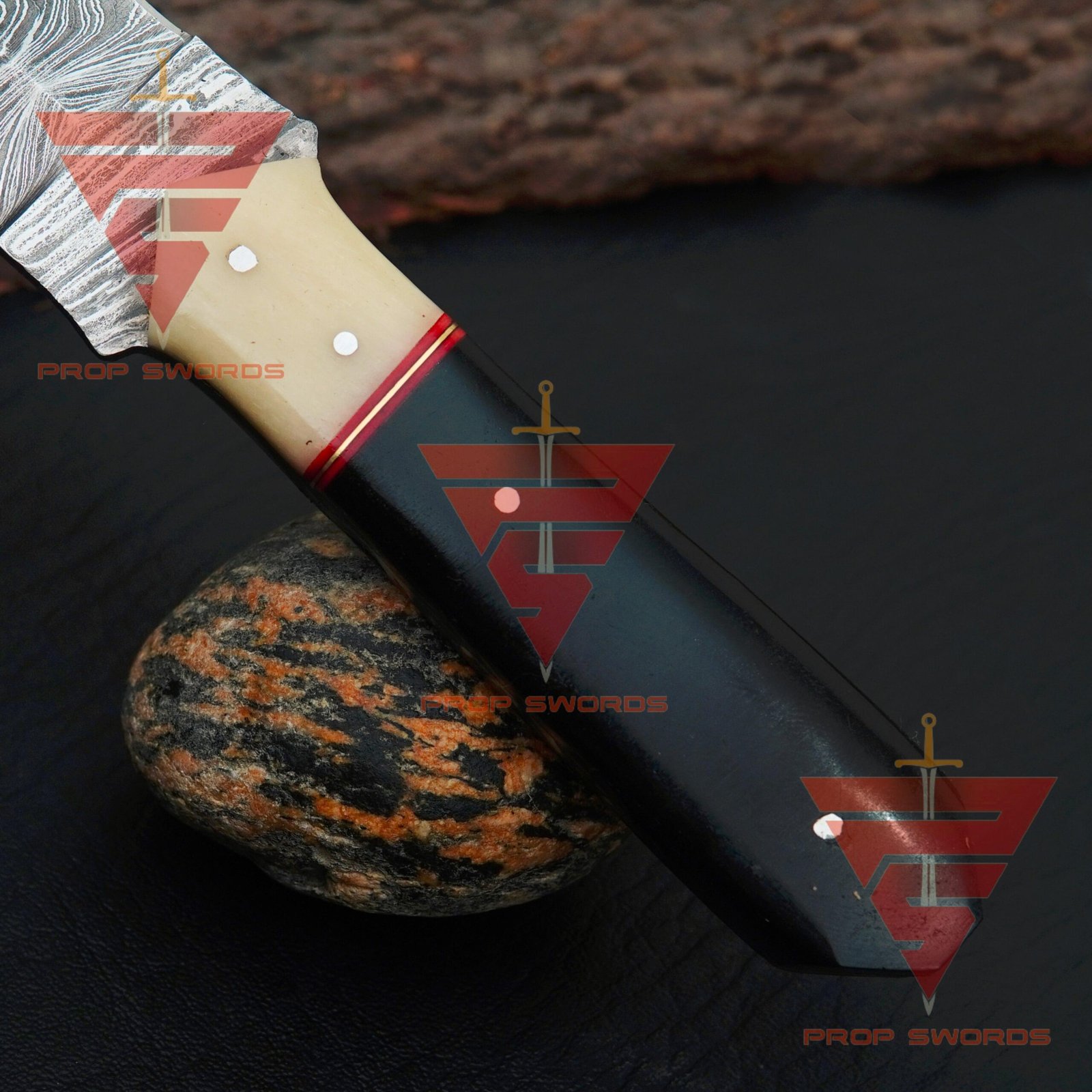 Indulge in the exquisite craftsmanship of our handmade Damascus knife, featuring a stunning handle crafted from luxurious rosewood and camel bone. This meticulously crafted knife is a perfect blend of beauty and functionality, boasting a combination of premium materials and exceptional attention to detail.