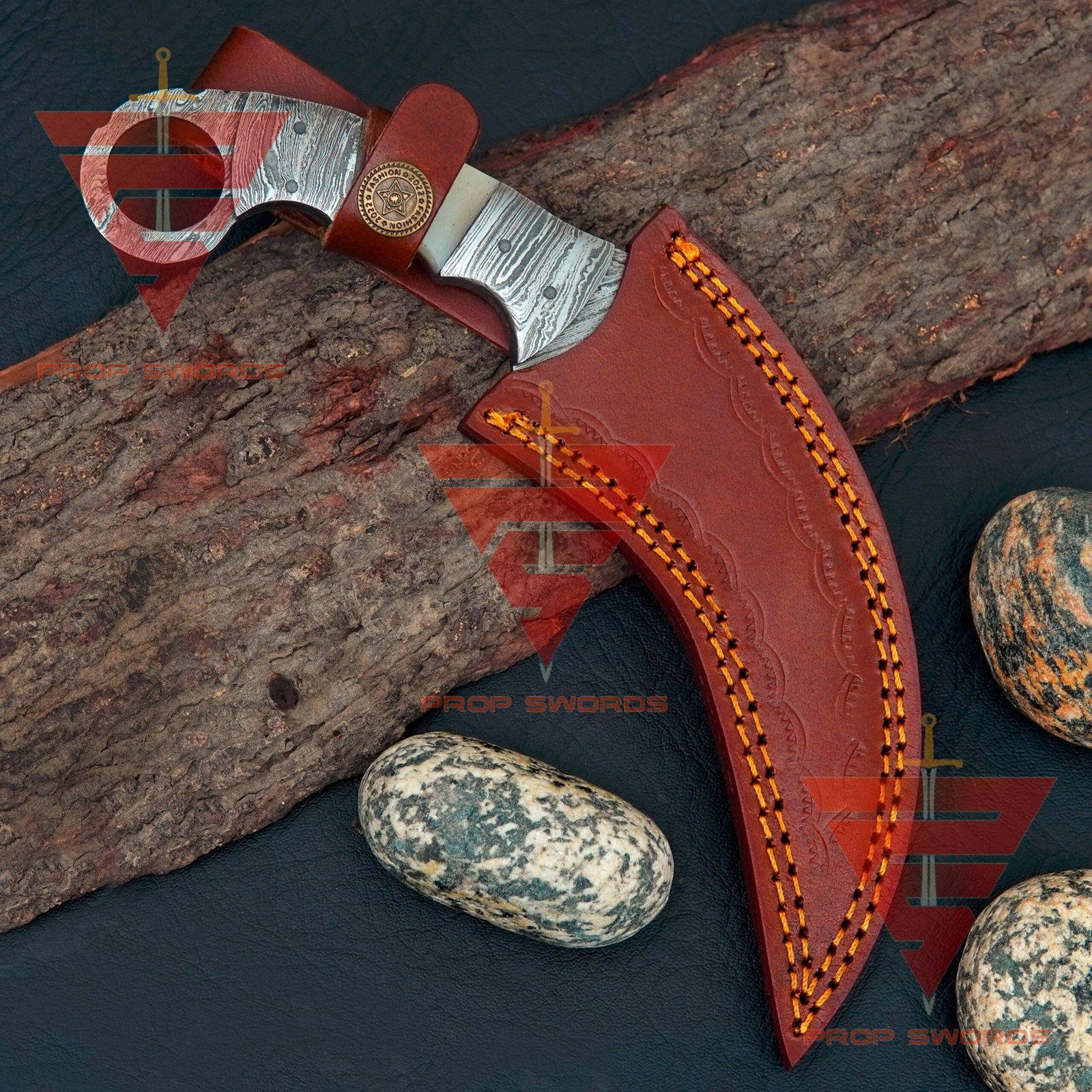 - Damascus Steel Karambit with Leather Sheath