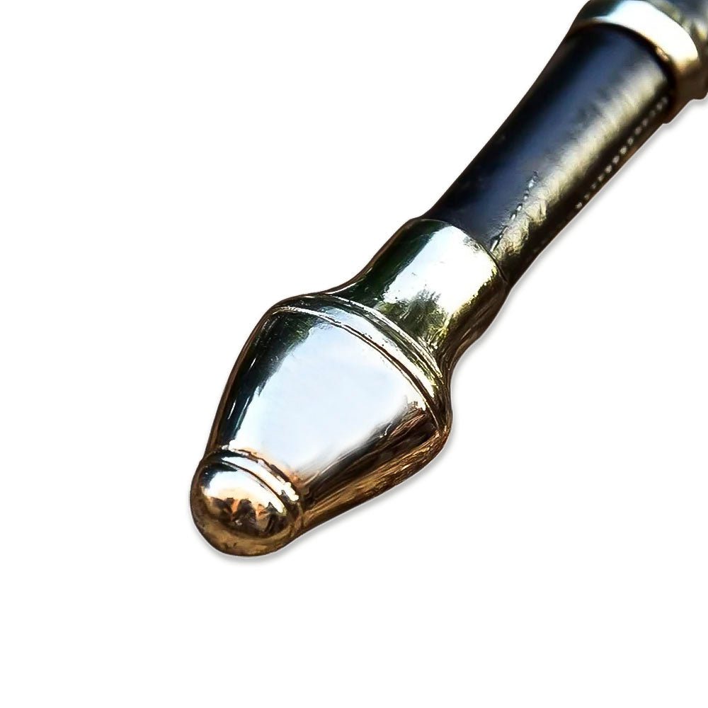 Handle: Leather-wrapped grip with medieval fittings