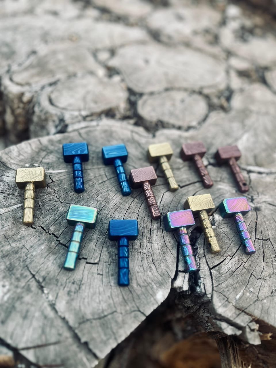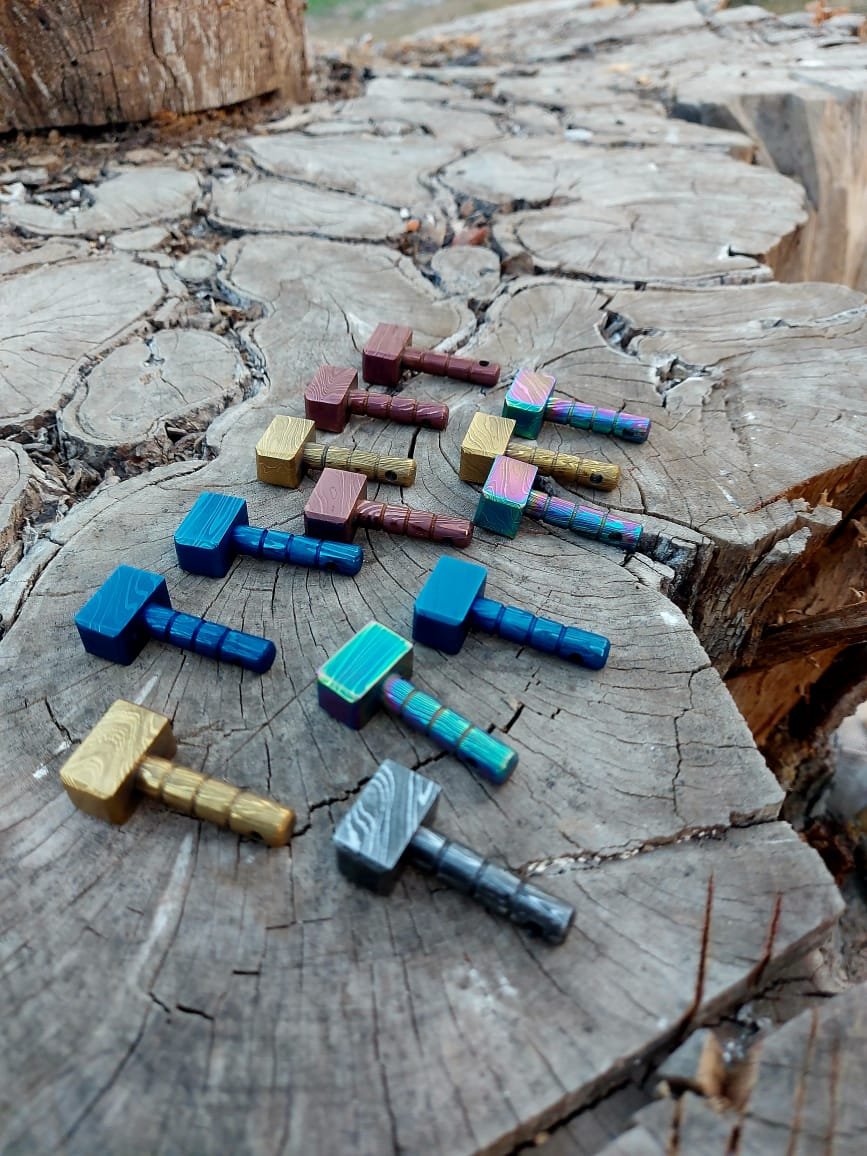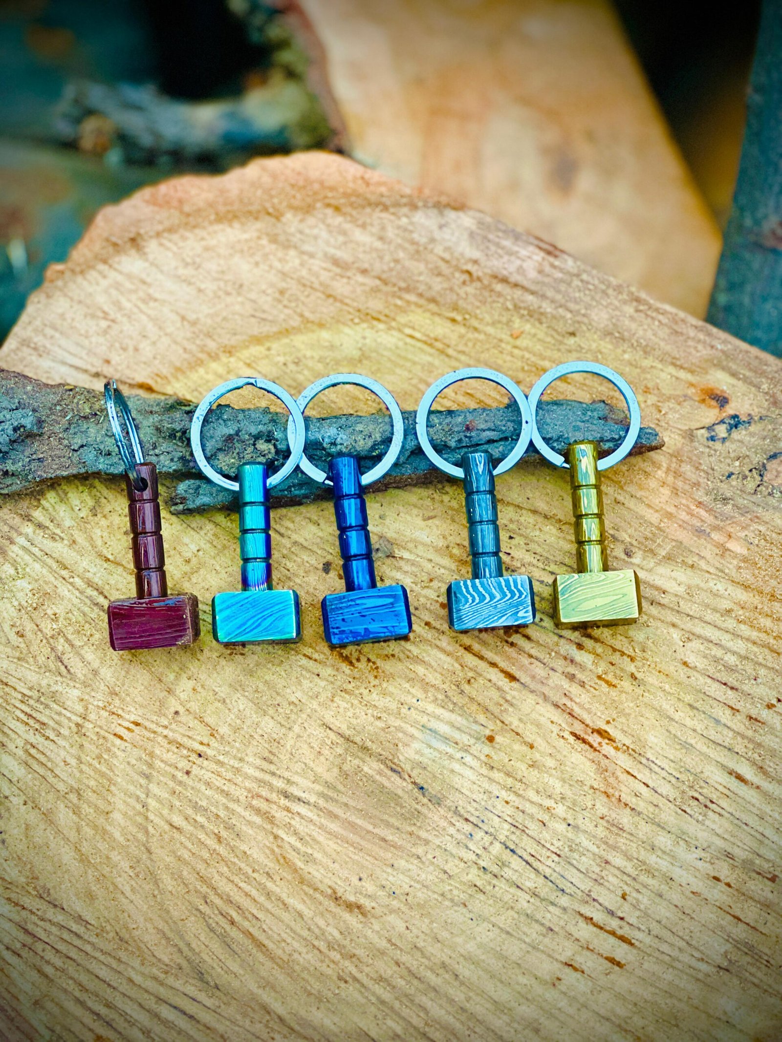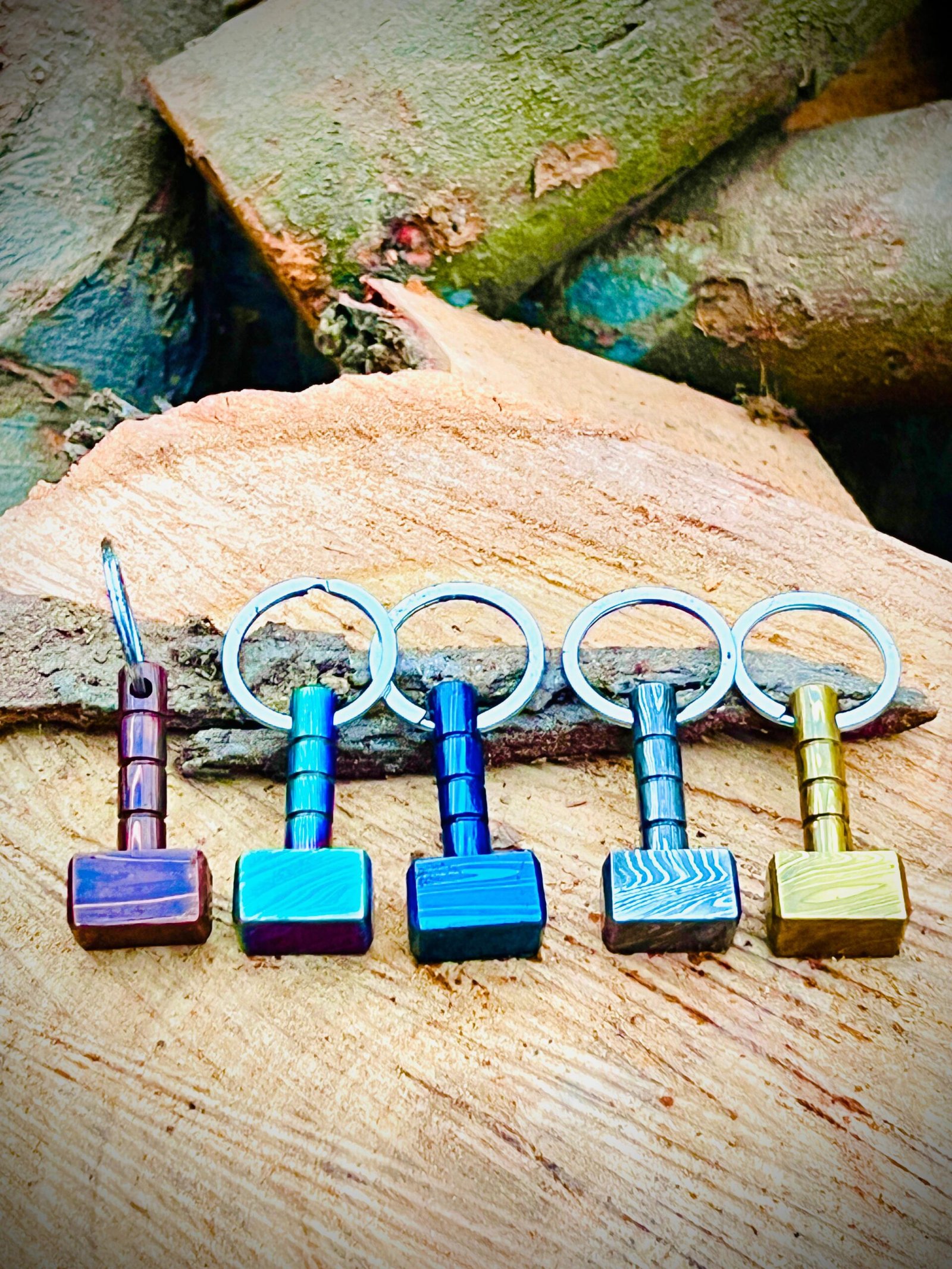 This compact keyring is inspired by Thor’s mighty hammer, making it a bold and meaningful accessory for fans of Norse mythology, Viking culture, or anyone who appreciates handcrafted steelwork. Finished with a vibrant, colorful patina, each keyring is one-of-a-kind, adding personality and flair to your everyday carry.