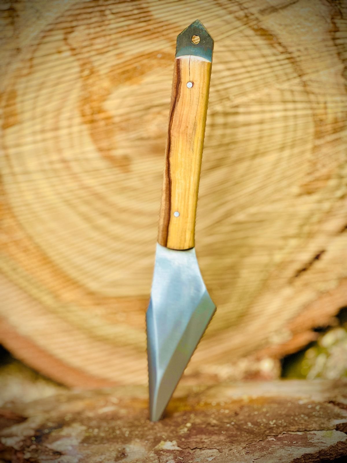 The handle is made from premium olive wood, known for its smooth texture, striking grain patterns, and natural resistance to moisture. Ergonomically shaped and polished to perfection, it offers both beauty and comfort in the hand.