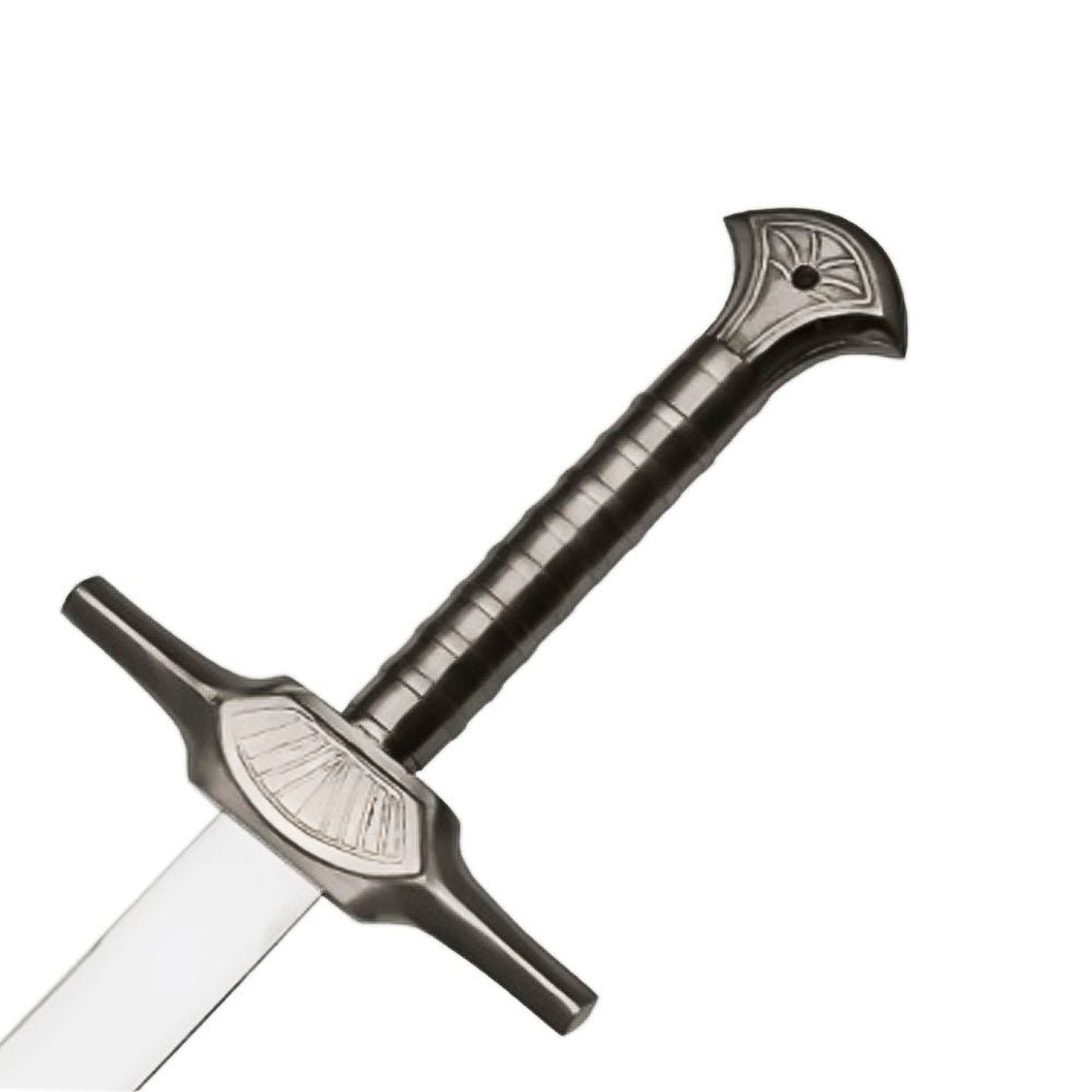 Sword of Ordon, inspired by The Legend of Zelda: Twilight Princess. This impressive replica brings the legendary weapon to life, making it perfect for collectors, cosplayers, and fans of the beloved video game series. Forged from high-quality stainless steel, the blade features a sleek, mirror-polished finish that emphasizes its heroic design. The iconic leaf-like pattern and sharp-edged profile of the Ordon Sword are faithfully recreated, capturing every detail seen in the game. Its sturdy rat-tail tang construction ensures strength and durability, whether displayed on a wall or carried to a convention. The hilt is decorated with a beautifully detailed crossguard and a comfortable grip, offering a firm and balanced hold. The sword comes complete with a custom-fitted leather sheath, ideal for safe storage or wearing on your back or belt. Features: Overall Length: 40 inches Blade Material: Stainless Steel (mirror-polished) Full rat-tail tang construction Inspired by the Ordon Sword from The Legend of Zelda: Twilight Princess Decorative crossguard and grip for an authentic look Includes genuine leather sheath Overall: 40″ Blade: 30″ Handle: 10″