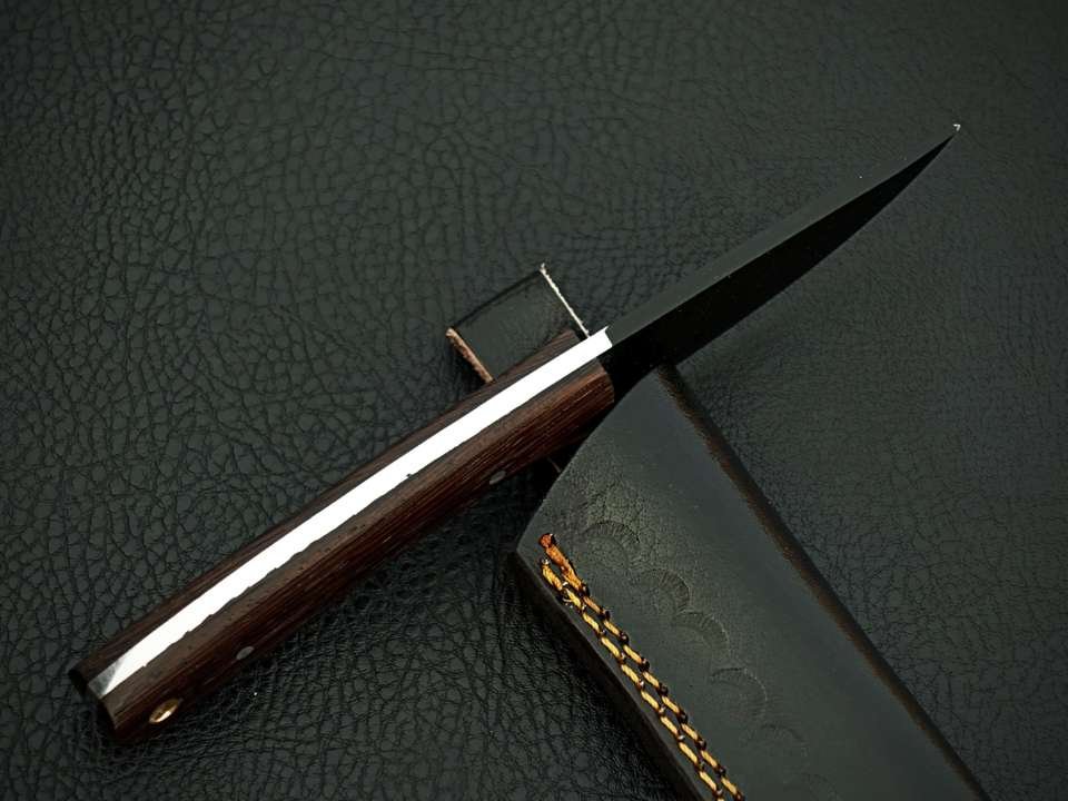 This versatile knife comes complete with a hand-stitched genuine leather sheath for safe storage and easy carry in the field. Whether you’re skinning game, carving wood, or preparing campfire meals, this bushcraft skinner knife is a perfect blend of function, craftsmanship, and traditional outdoor style.