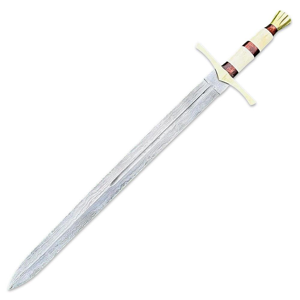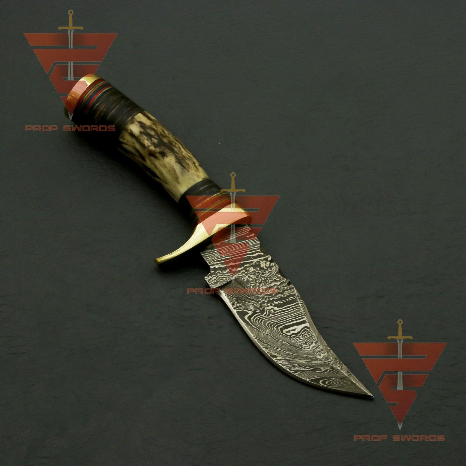 Handcrafted Damascus Steel Stag Horn Knife with Custom Engraving, Enchanting Bolster Handle, and Bespoke Leather Sheath – Ideal Father’s Day Gift and Ultimate Hunting Companion