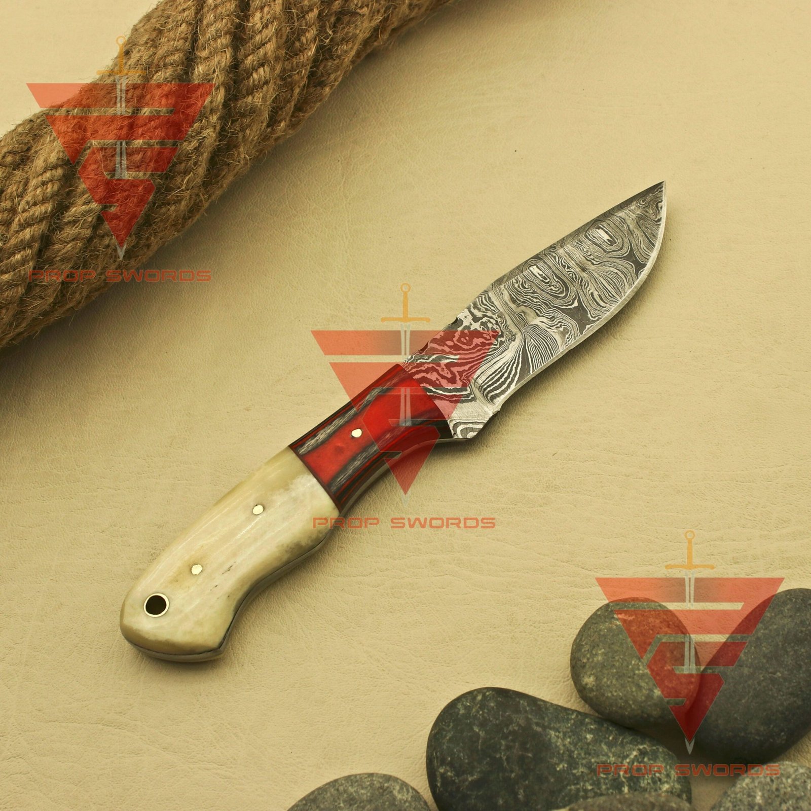 Handmade Damascus Steel Skinner Camping Hunting Knife with Beautiful Handle Design – Ideal Personalized Gift for Him, Complete with Sheath